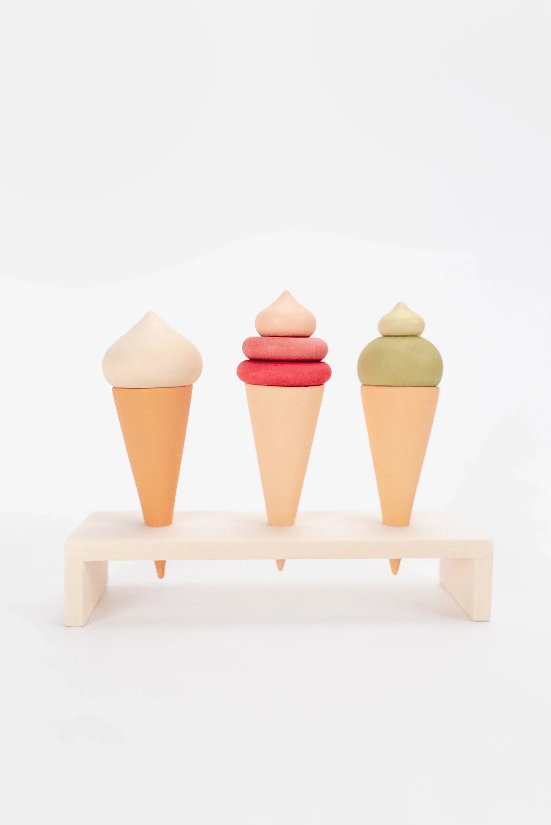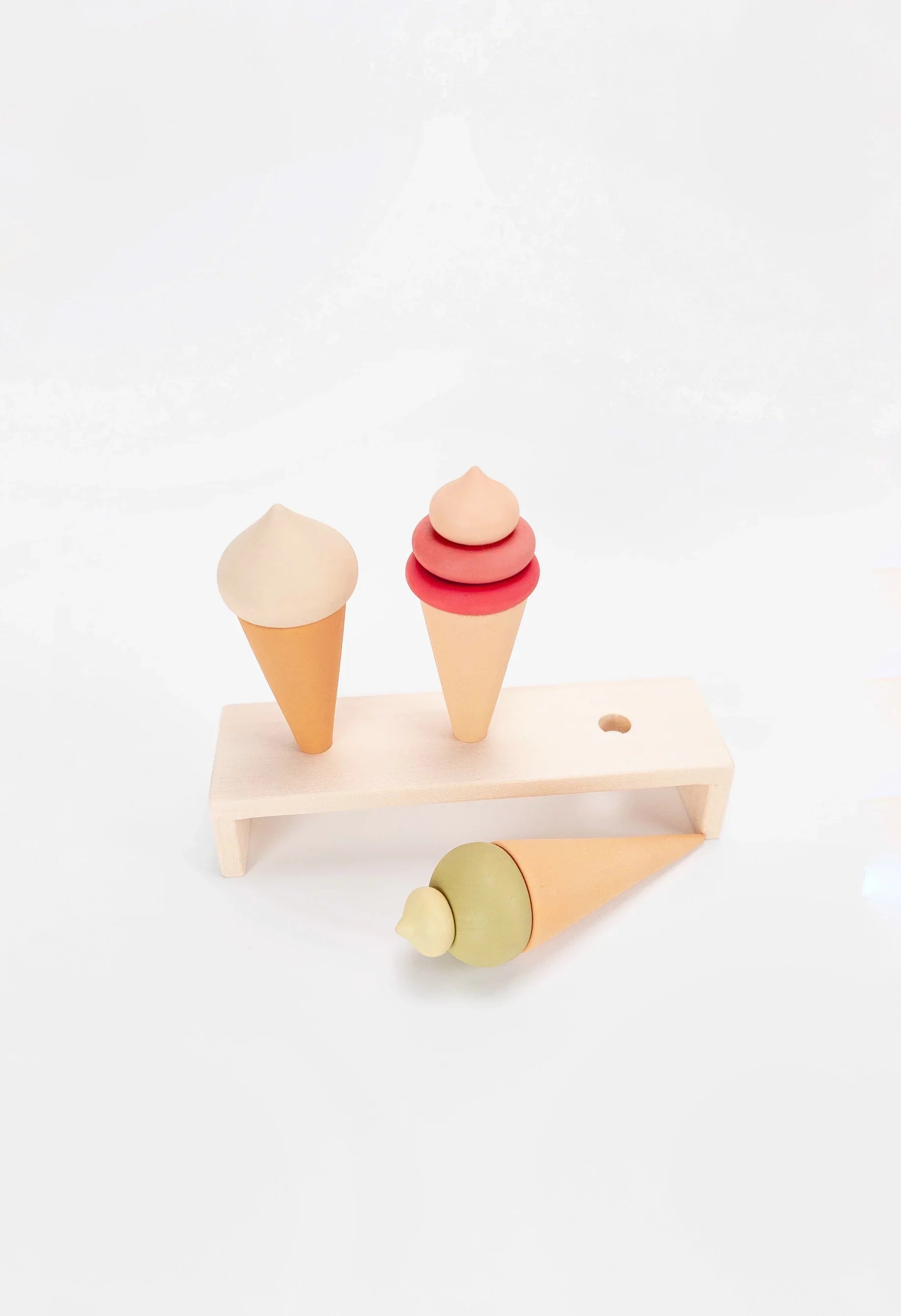 The set includes a stand, 3 ice cream cones.